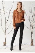 Джемпер женский с длин. рукавами, низ кот. закеттлеван "манжетами". V- образный вырез горловины закеттлеван бейкой. Низ стана заработан.Длина изделия: 58 -63 см. в зависимости от размераДлина рукава: 68 - 70 см. в зависимости от размера Состав: вискоза - 12%, ПАН - 86%, метанит - 2%..
