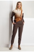 Комплект женский, состоящий из джемпера и брюк. Комплект выполнен в жаккардовом переплетении пряж гармонирующих цветов. Джемпер прямого силуэта. Рукав втачной, одношовный, длинный, по покрою – спущенное плечо. Низ рукава – ластик. Воротник – стойка, выполнена в переплетении ластик. Также в горловину вкеттлёвана бейка со штрипкой-имитацией завязки. В переде и спинке по низу - заработок ластик. Брюки длинные, прямого силуэта, зауженные к низу. Низ брюк и пояс – сдвоенная кулирная гладь. На переде обработаны карманы с руликами по краям. Перед джемпера выполнен в жаккарде четырёх цветов с рисунком «Деграде». Спинка, рукава джемпера, а также детали брюк выполнены в трёхцветном жаккарде.Длина джемпера: 59 - 62 см. в зависимости от размераДлина рукава: 50 см.Длина брюк: 96 - 99 см. в зависимости от размераСостав: хлопок - 17%, вискоза - 39%, ПАН - 41%, метанит - 3%;..