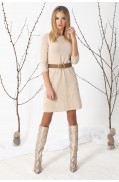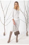 Платье женское полуприлегающего А-образного силуэта. Круглый вырез горловины закеттлеван бейкой. Рукав втачной 3/4. Низ стана и рукавов заработаны.Длина изделия: 91,5 - 100 см. в зависимости от размера Длина рукава: 47 см. Состав: вискоза - 46%, ПА - 14%, ПАН - 40%..