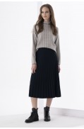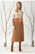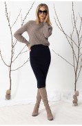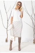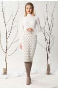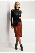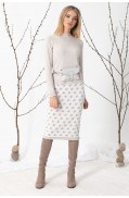 Юбка женская прямого силуэта, длиной выше колена, выполнена в жаккардовом переплетении пряж 3х цветов. Юбка на поясе – сдвоенная кулирная гладь. Низ юбки – также сдвоенная кулирная гладь. Подкладка в юбке гармонирующего цвета с колоритом жаккарда.Длина изделия: 67 см.Состав: шерсть - 6%, вискоза - 47%, ПА - 10%, ПАН - 37%; подкладка: ПЭ - 100%..