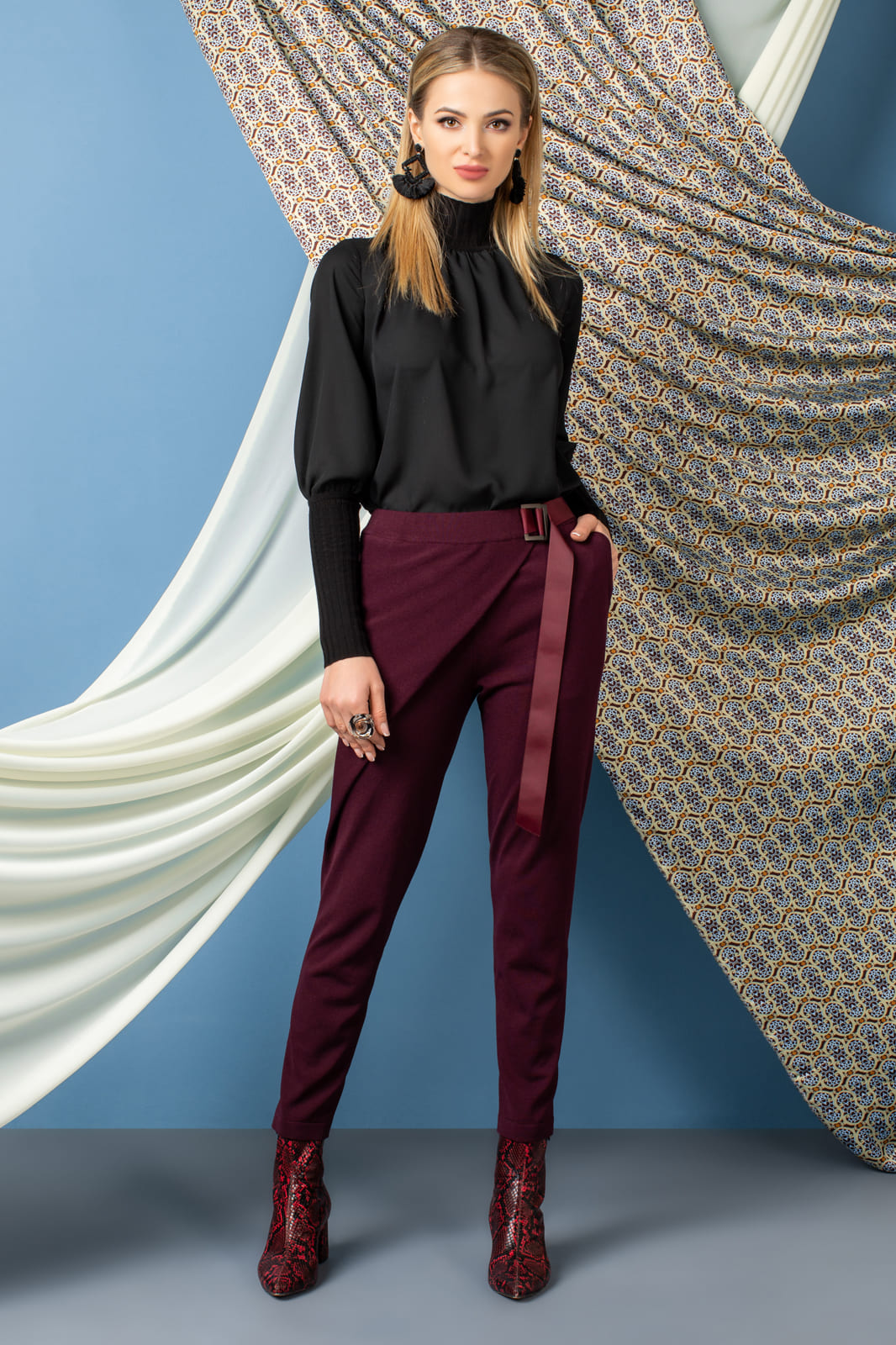 Брюки с запахом. На поясе – имитация застёжки на