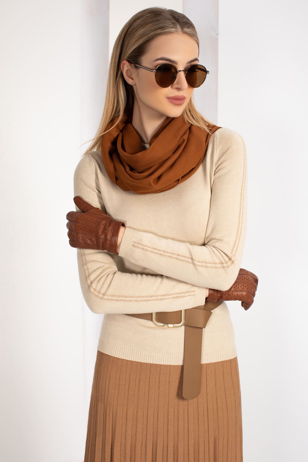 Джемпер женский полуприлегающего силуэта с длинными втачными рукавами. Круглый вырез горловины закеттлеван двойной бейкой. По переду нашивка BG. Низ стана и рукавов заработаны.