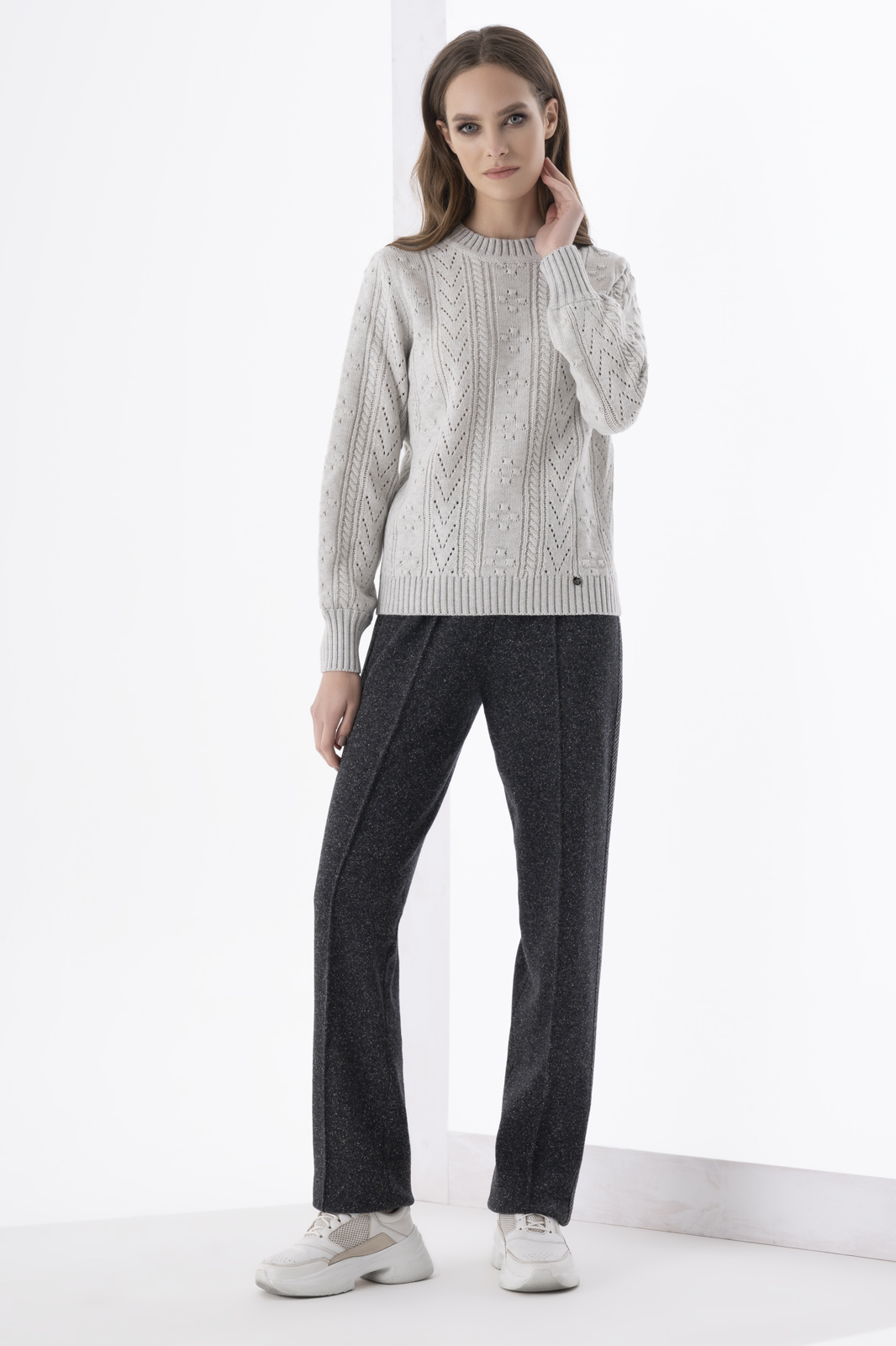 Джемпер женский полуприлегающего силуэта с длин. втачными, объемными рукавами и прикеттлеван. манжетами. Низ кот. заработан. Низ стана заработан. По переду нашивка BG