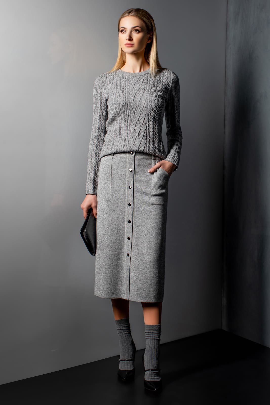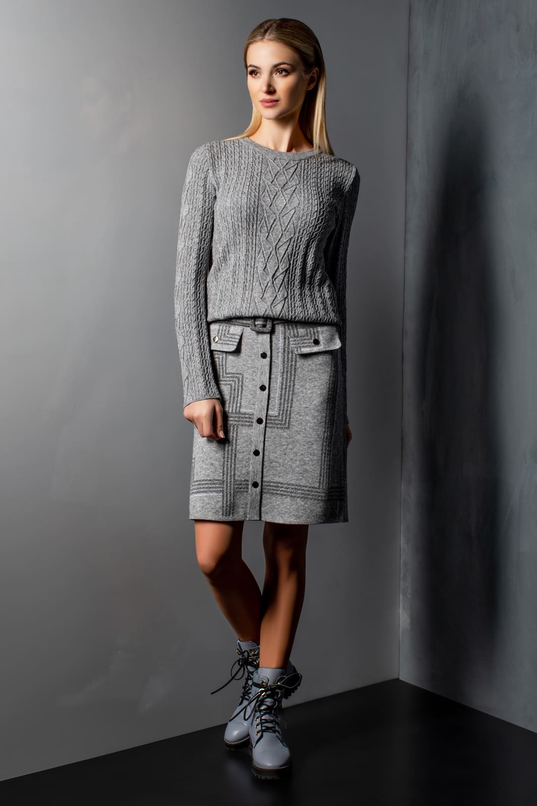 Джемпер женский полуприлегающего силуэта с длин. втачными рукавами. Круглый вырез горловины закеттлеван. Низ стана и рукавов заработаны.