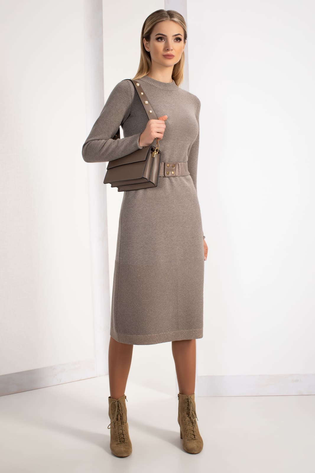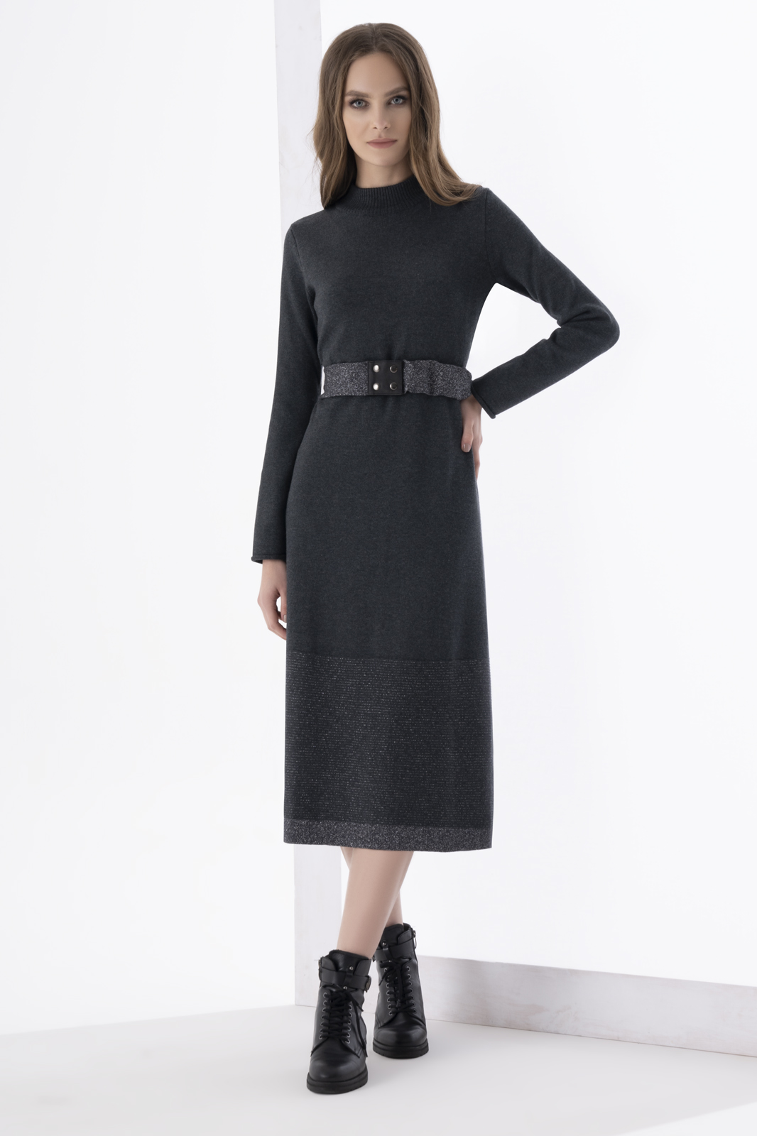 Платье женское полуприлегающего силуэта с длин. втачными рукавами. Круглый вырез горловины обработ. воротником, двойн. ластичным. На поясе; пояс с проложением эластичной тесьмы и застежкой на пробивные кнопки. Низ стана и рукавов заработаны.