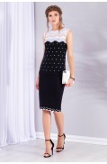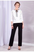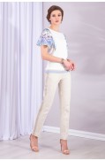 Джемпер женский полуприлегающего силуэта, двухцветный, комбинированный с кружевом, с застёжкой на навесную петлю и пуговицы на спинке. Рукав короткий, спущенное плечо. Вырез горловины круглый, окантован сеткой. На переде и спинке - кокетки из кружева. Основная часть переда и спинки - двухцветный жаккард. Низ джемпера - сдвоенная кулирная гладь. Пуговица - в цвет кружева. Отстрочка деталей джемпера - в цвет составляющих (пряжи, кружева, сетки).Длина джемпера: 53 - 58 см. в зависимости от размераСостав: Вискоза - 58%, ПАН - 40%, Метанит - 2%Отделка: ПЭ - 100% ..