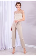 Джемпер женский полуприлегающего силуэта из 2х видов пряжи, комбинированный с кружевом. Рукав втачной, одношовный, короткий. По низу - штрипка из пряжи с люрексом, гармонирующая по цвету с кружевом. Вырез горловины круглый, кеттлюется бейкой из пряжи с люрексом. Верхняя часть переда джемпера выполнена из кружева, дополнена аппликацией из страз в гармонирующем цвете с составляющими изделия. Низ джемпера - сдвоенная кулирная гладь.Длина джемпера: 55 - 61 см. в зависимости от размераДлина рукава: 16,5 - 21 см. в зависимости от размераСостав: Вискоза - 50%, ПАН - 50%Отделка: ПЭ - 100%..